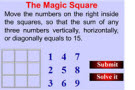 In this magic square game you have to place nine given numbers inside the cells of a square, in order to obtain the same number, 15, when adding numbers vertically, horizontally, or diagonally.