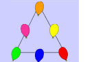 In this triangle logic game you are to place nine different numbers inside the six given baloons, so that the sum on every side of the triangle is equal to the same given number.