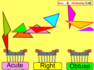 In this game, students will practice classifying triangles as as acute, right, or obtuse by dragging and dropping different figures in the correct basket in less than two minutes.
